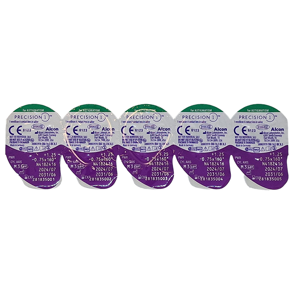 Precision 1 for Astigmatism is de torische uitvoering van de populaire Precision 1 daglens van Alcon. De lens corrigeert cilinderafwijkingen (astigmatisme) dankzij een geavanceerd stabilisatiesysteem dat de lens perfect gepositioneerd houdt op het oog. Hierdoor blijft het zicht scherp en constant, ongeacht bewegingen of knipperen.